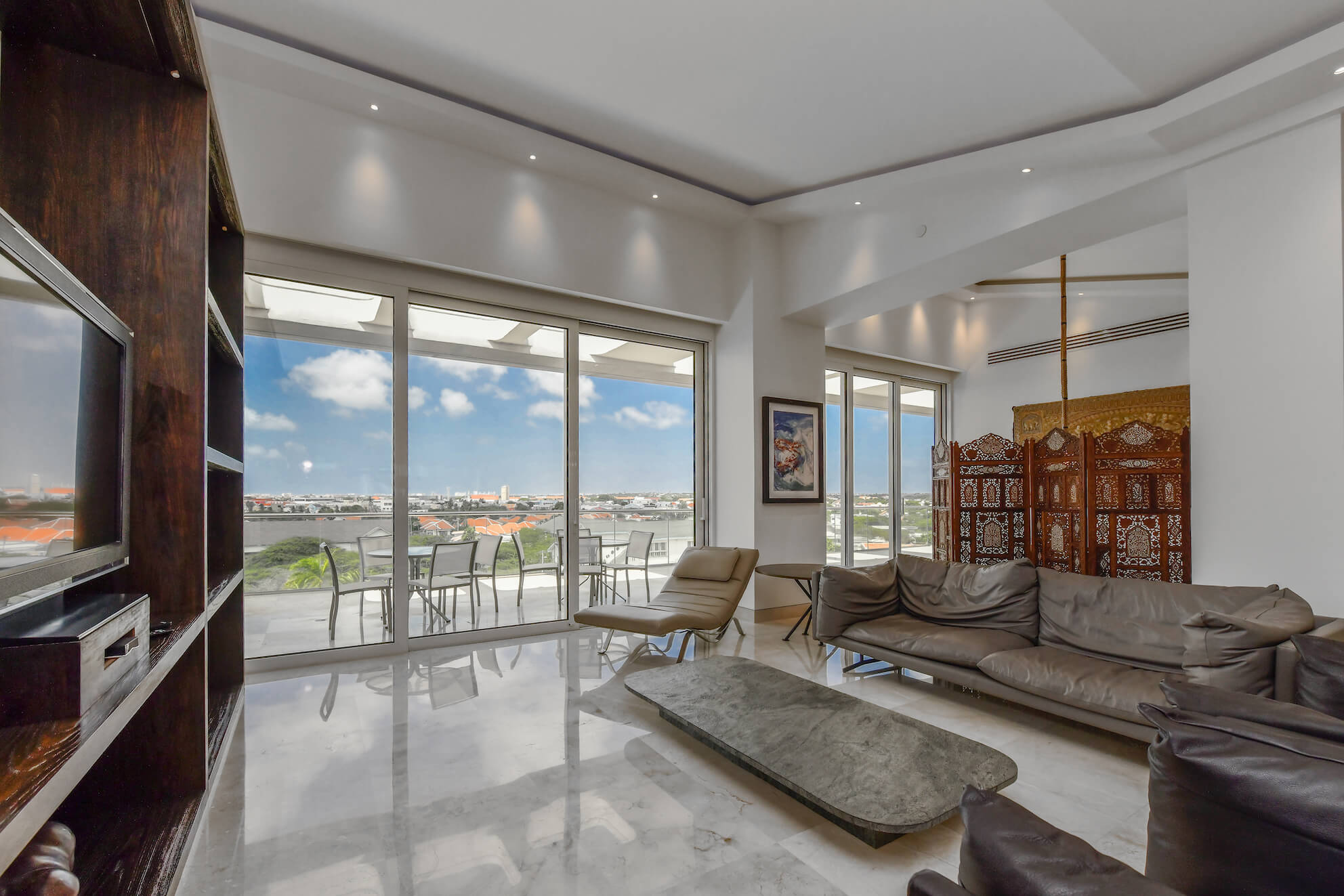 The private terraces provide over 1,500 ft² of outdoor living space, perfect for relaxing, entertaining, or enjoying Aruba’s year-round sunshine.